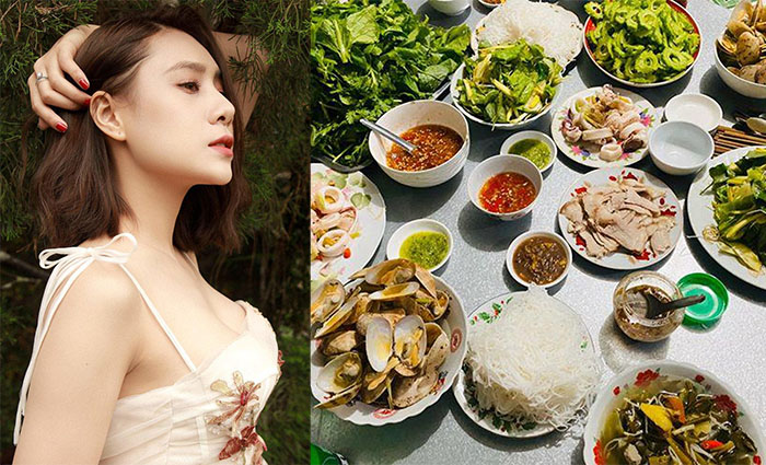 Những mâm cơm của Hồ Bích Trâm luôn đậm vị miền Trung quê hương cô với nhiều món ngon vùng biển.